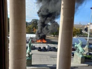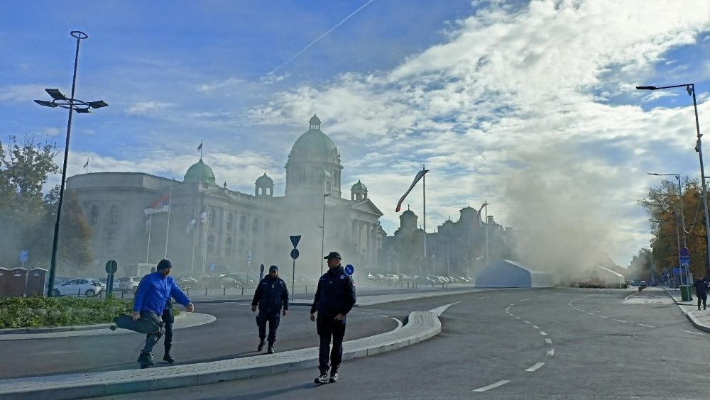 Incident se dogodio dok je trajala sednica Skupštine Srbije, a policija je privela najmanje jednu osobu. Predsednik Aleksandar Vučić će se vanredno obratiti u 13 sati.